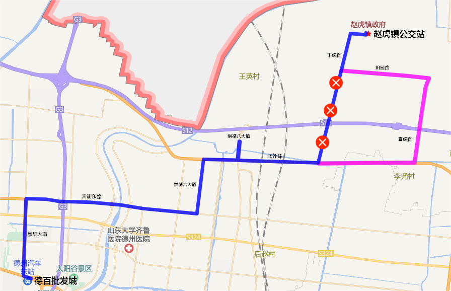 128路:德百批發(fā)城 至 趙虎鎮(zhèn)公交站: